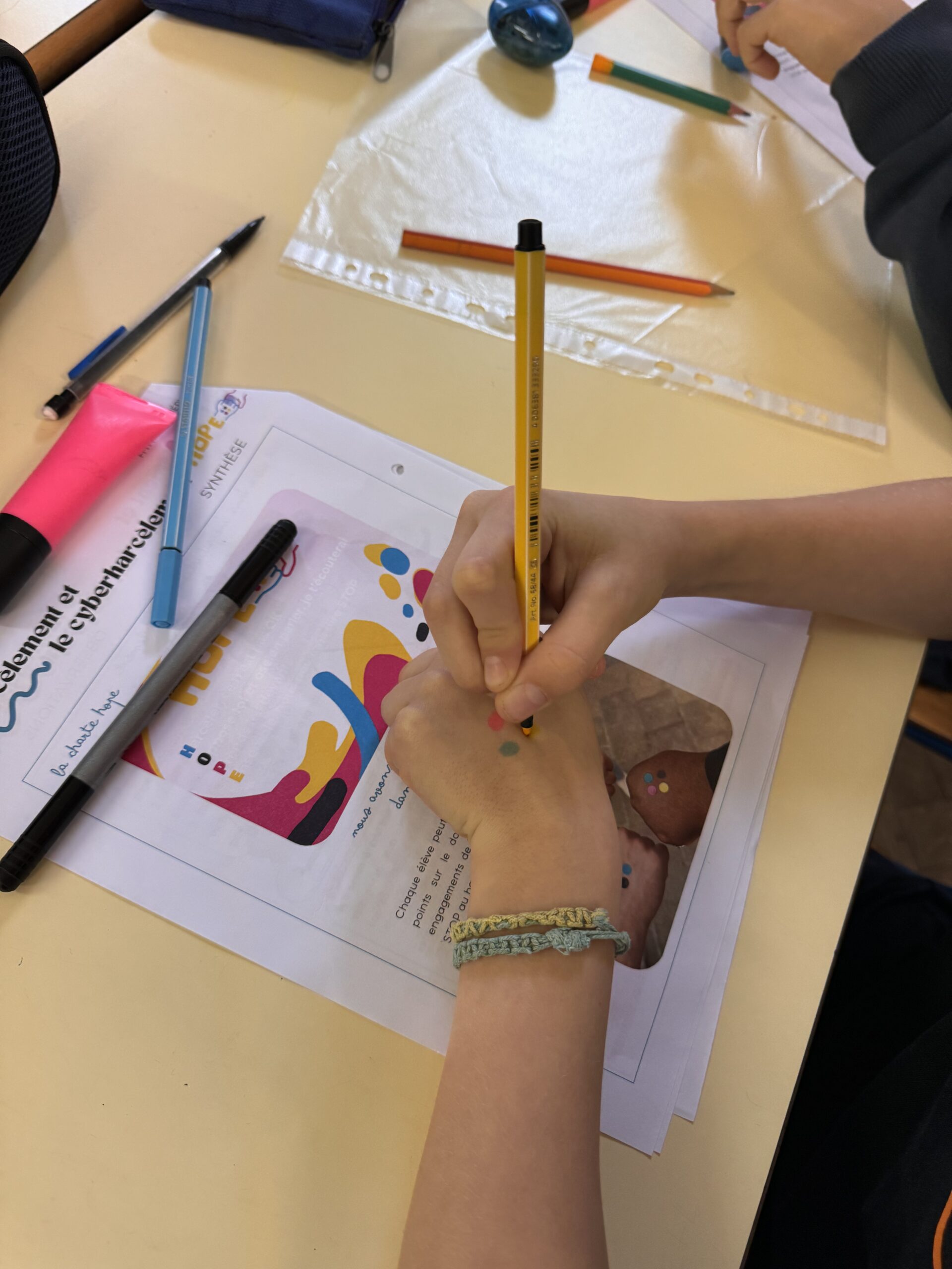 En signe d’un engagement commun, tous les élèves de l’école primaire ont signé la Charte HOPE, marquant ainsi leur volonté de lutter ensemble contre le harcèlement et de promouvoir un climat de bienveillance et de respect.